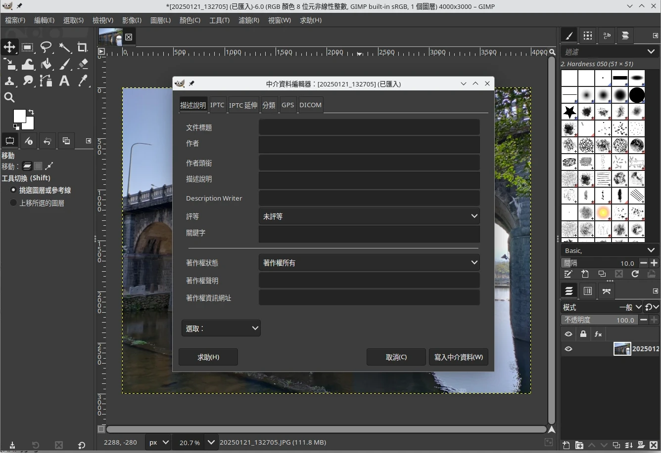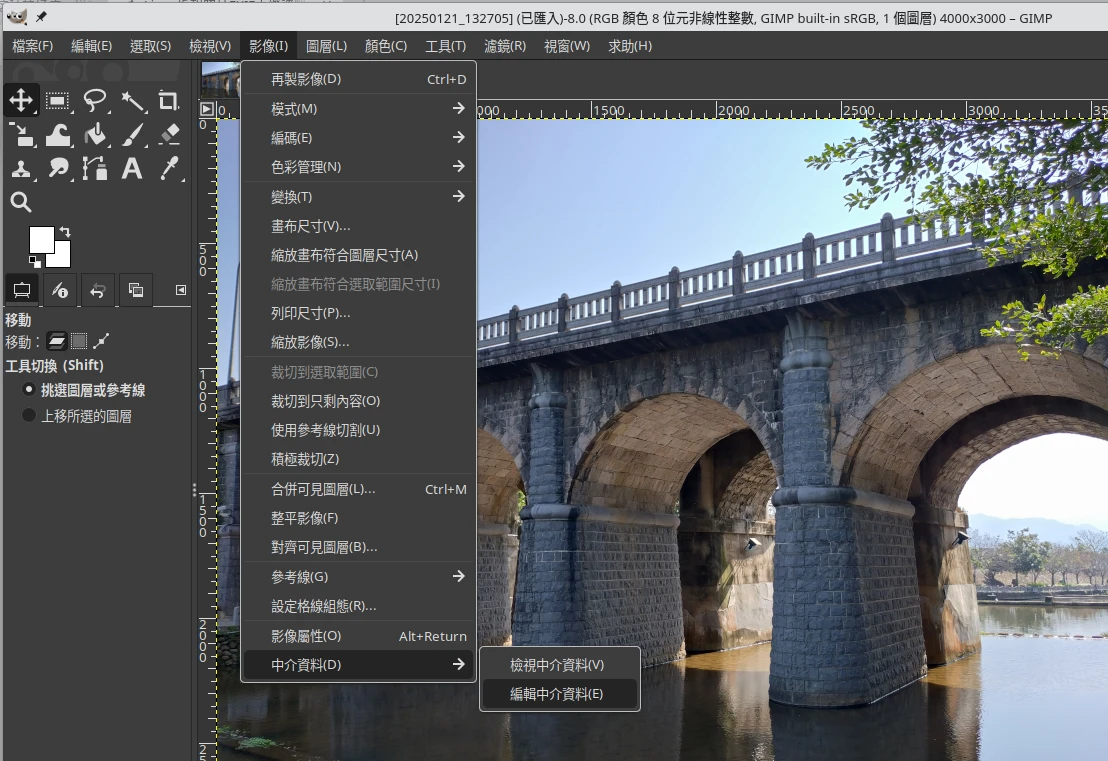 注意:目前GIMP 3.0能編輯的EXIF欄位有限。
