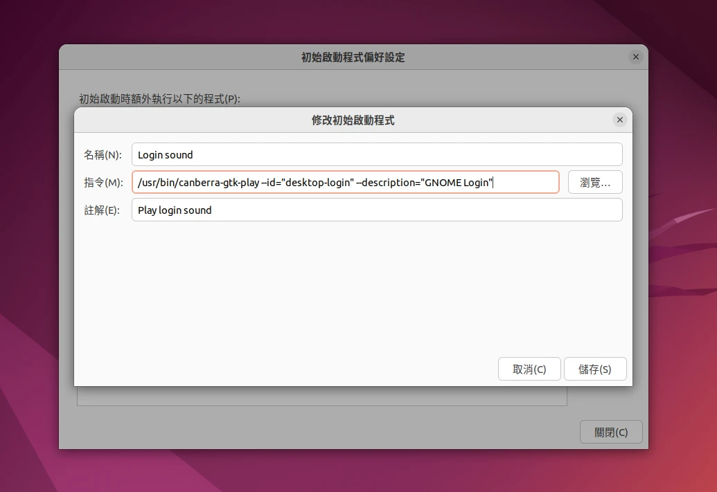 另一種設定登入音效的方法是使用/usr/bin/canberra-gtk-play,似乎只對Ubuntu的GNOME有效。