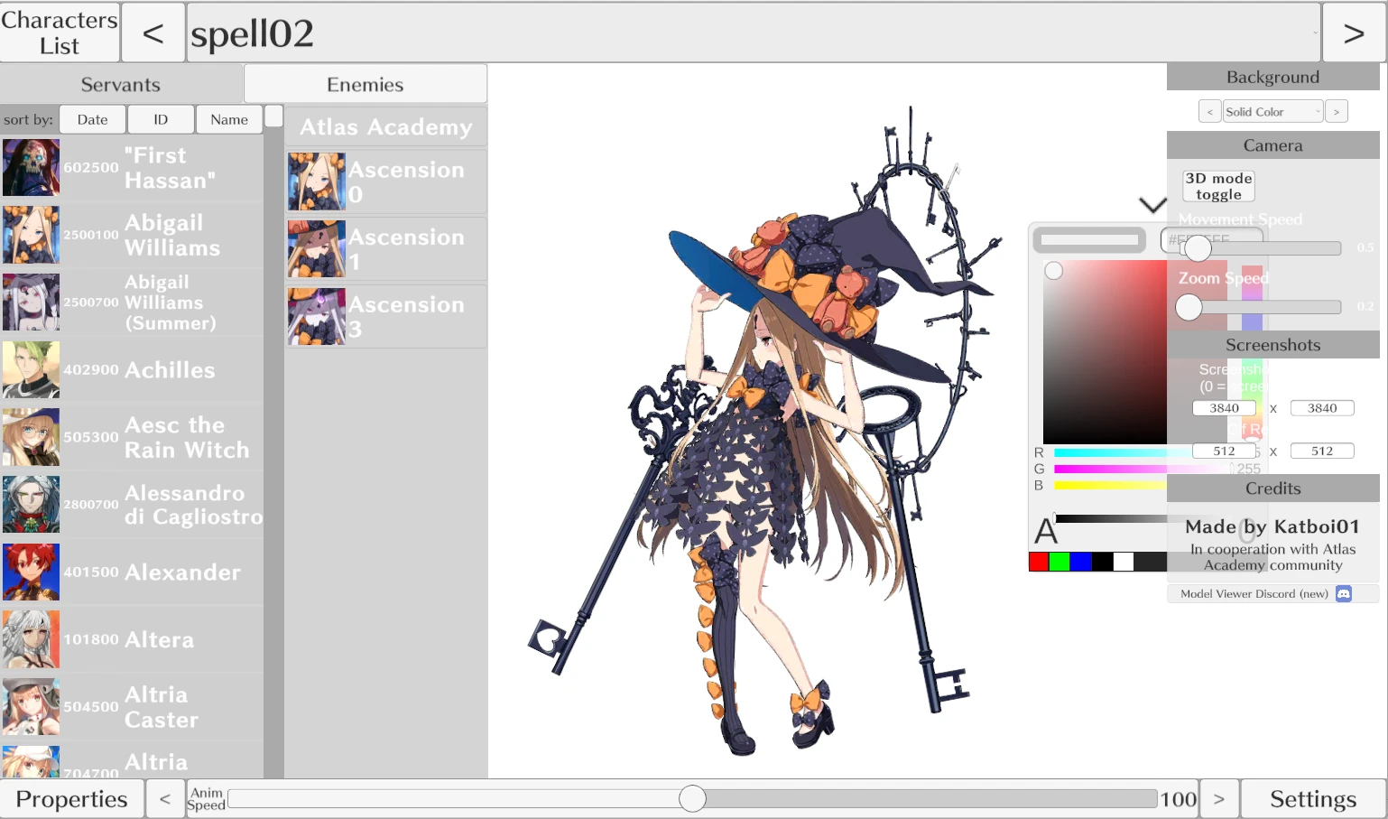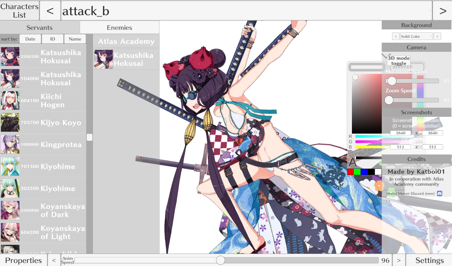 Fate Animation Viewer是一個線上檢視Fate/Go遊戲角色模組(sprite)的網站,由katboi01 &Atlas Academy Community製作。