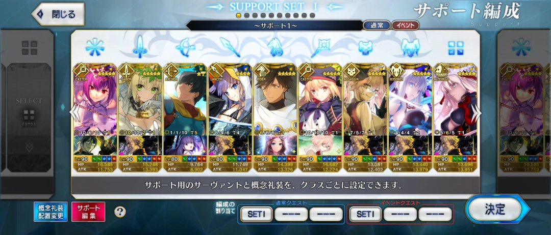 打手就更不必說了,各種職階顏色的輸出一堆,劇情關遇到強敵有各種戰術運用,AppMedia上寫的攻略我都能參考,因為好用的角色幾乎都有抽到。蘭斯洛特(Berserker)和陳宮(Caster)更是周回超級大幫手!聖杯餵好餵滿。