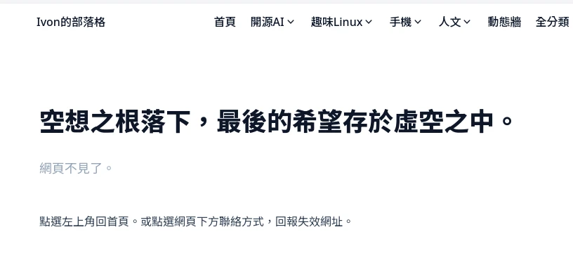 本部落格的404頁面訊息就是來自FGO第二部的標語,網頁不見了?因為已經跑到虛數空間了~