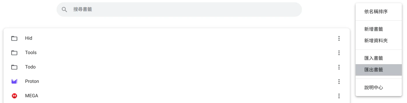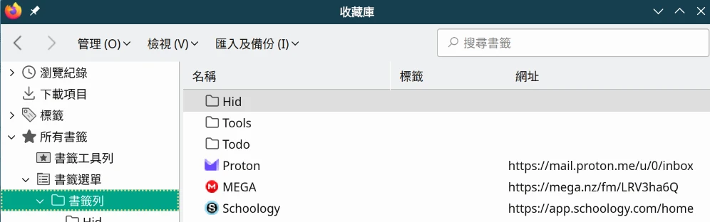 書籤成功匯入。由於Chrome跟Firefox的書籤結構不太一樣,「書籤列」會跑到「書籤選單」,此時只要將書籤列的資料夾拉到「書籤工具列」即可。
