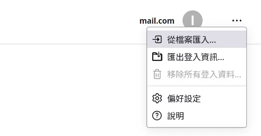 about:config,搜尋signon.management.page.fileImport.enabled,點二下使其變成true。