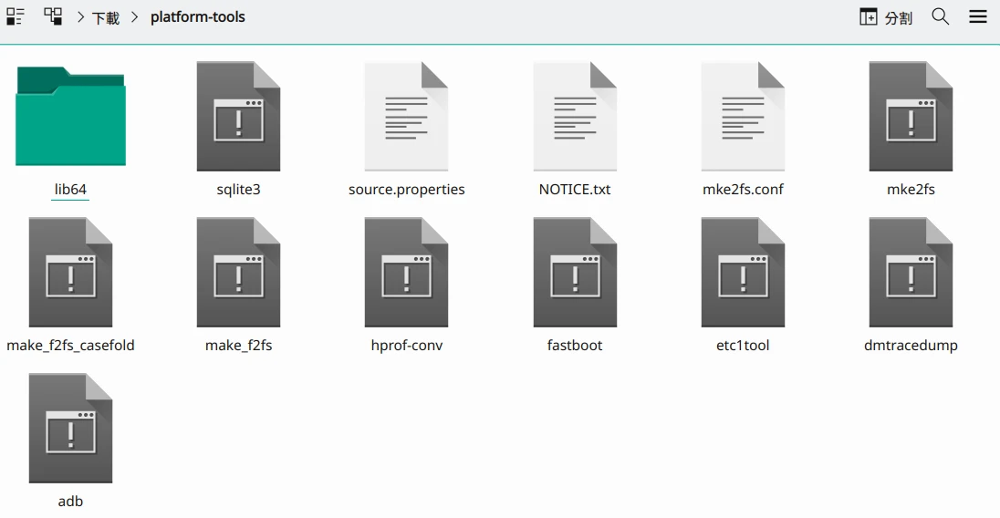 解壓縮即會得到adb和fastboot的二進位執行檔。
