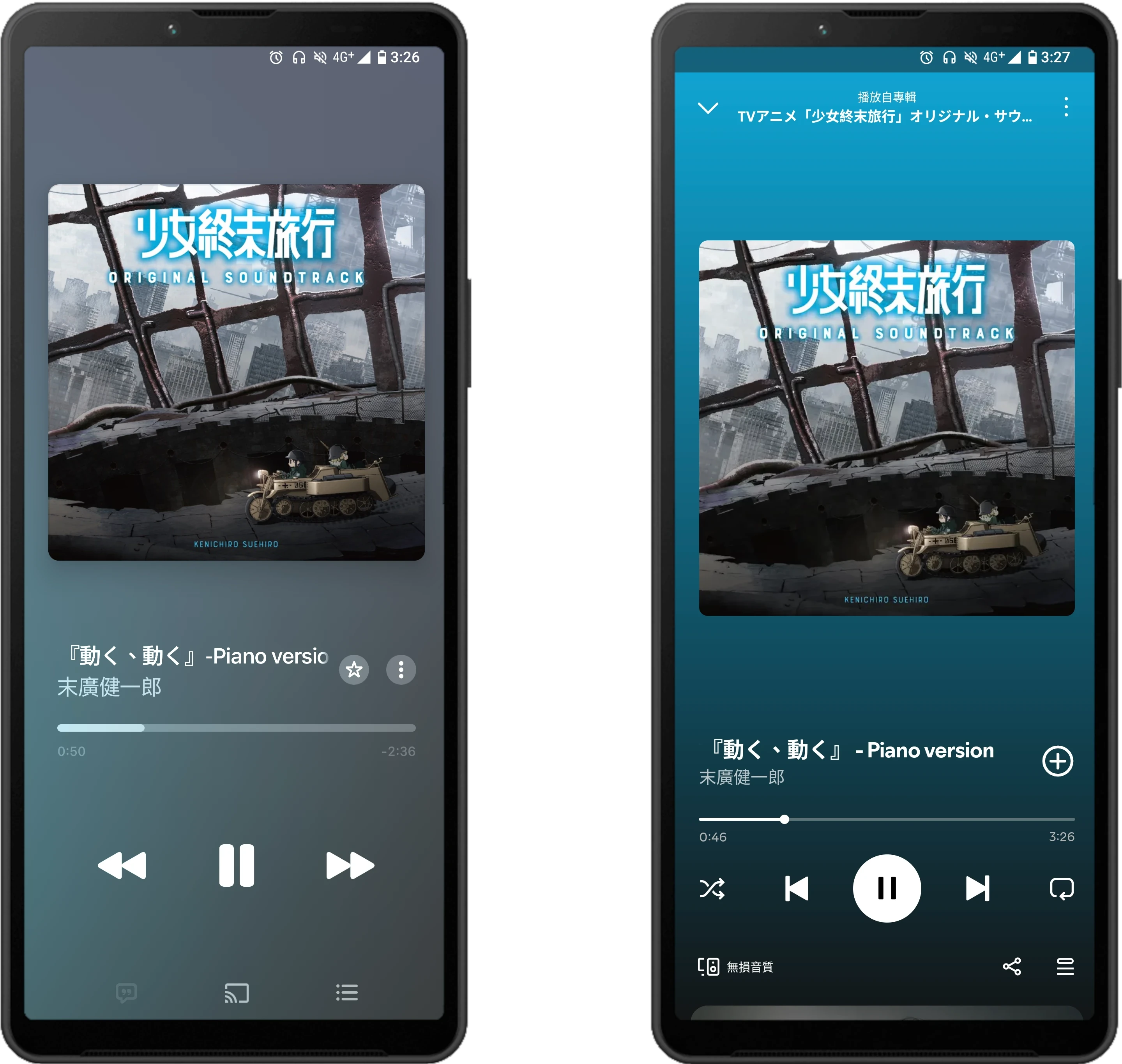 (Apple Music與Spotify在Sony Xperia Android手機的界面比較)
