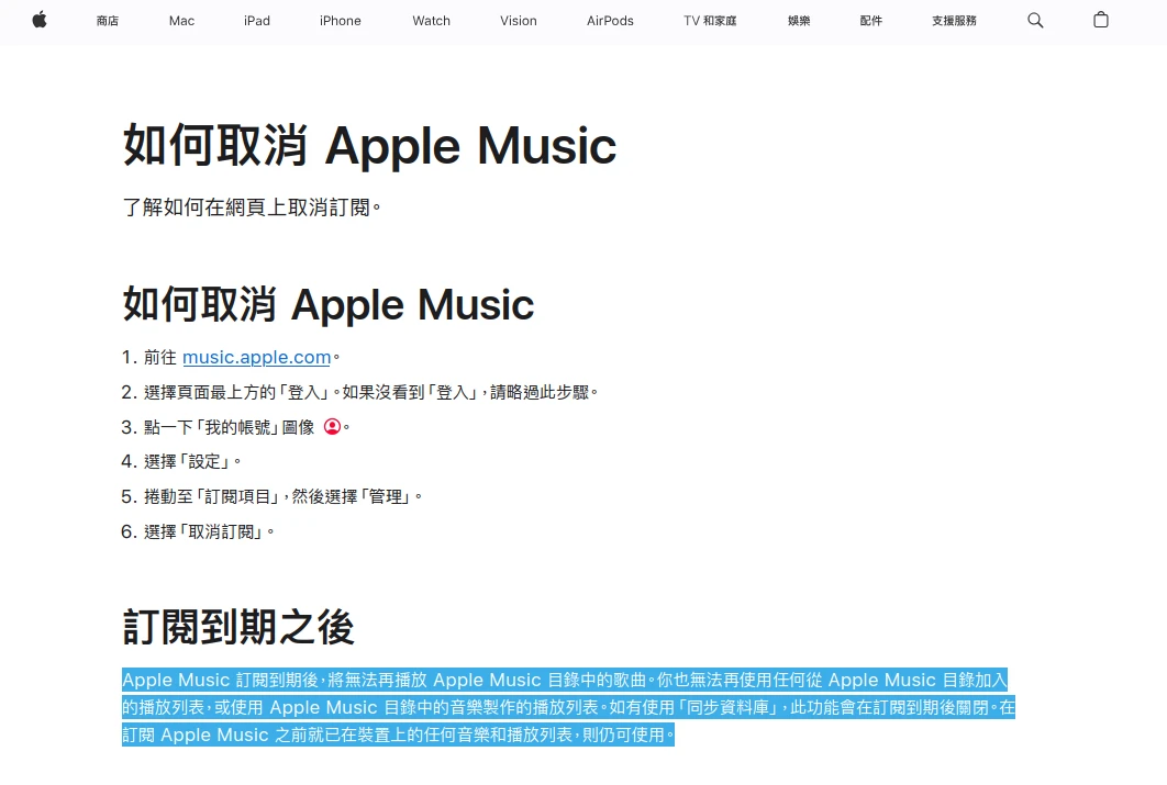 所以我踏出了關鍵性的一步。退訂Apple Music。我早就聽聞風聲Apple Music退訂之後,收藏的音樂資料庫會被清空。官網說明含糊不清。