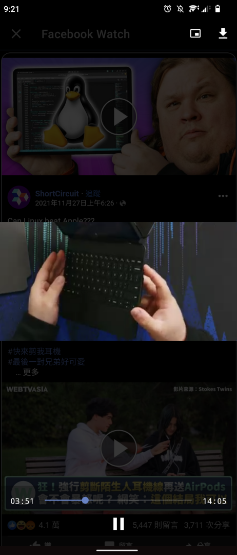 圖片懸浮預覽,Frost支援畫中畫播放Facebook影片,還可以下載Facebook影片。