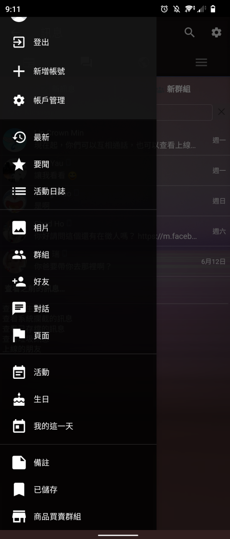 側邊欄有常用的快捷功能選單,支援多個Facebook帳號快速切換。