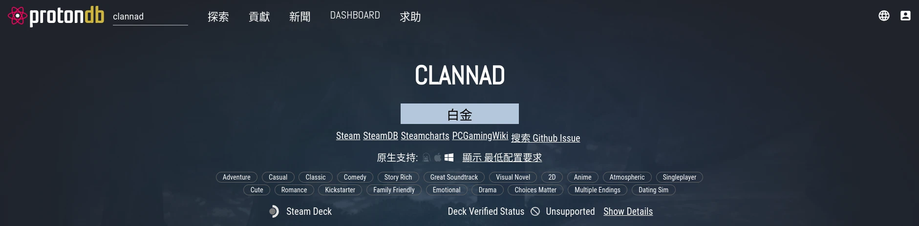 可是這樣對盜版仔和成人遊戲玩家一點都不友善ㄟ?所幸ProtonDB背後的技術就是Wine,所以還有參考價值,Proton能跑,Wine也大機率能跑。