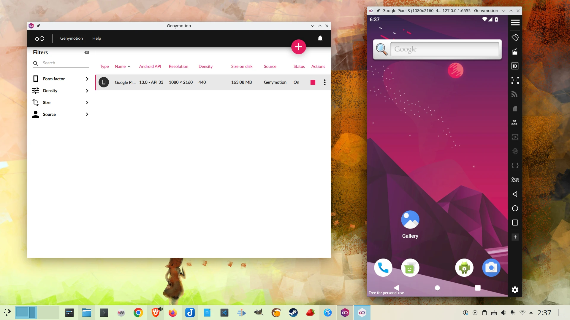 在眾多Linux Android模擬器方案中,Genoymotion的功能跟Android Studio的AVD不相上下,同樣支援GPU加速和ARM轉譯,也能模擬許多Android裝置。