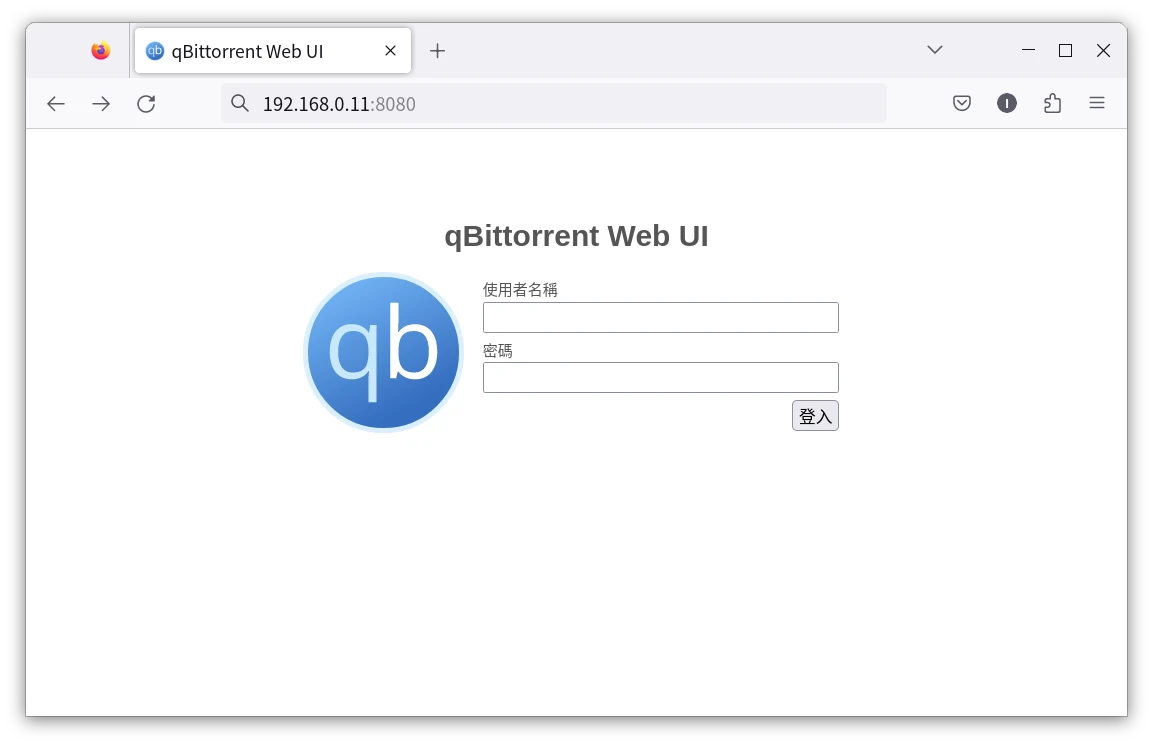 所幸,剛才我們已經將qBittorrent的8080通訊埠加到Gluetun的docker-compose,您應當可以打http://伺服器IP:8080或http://Gluetun的容器IP:8080存取qBittorrent的網頁界面!