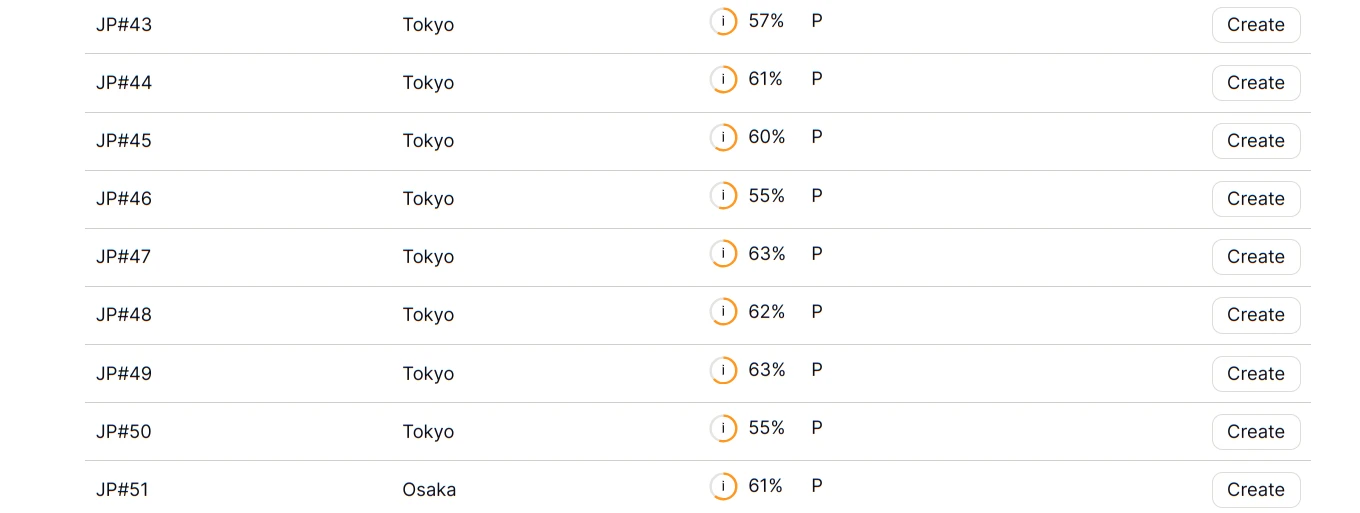 在下方列表選取負載低的伺服器,由於我是付費方案所以有更多伺服器可選。點選Create。