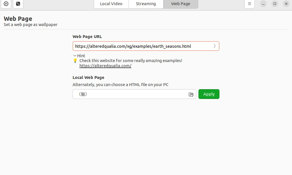 Hidamari也可以載入本機HTML檔案。