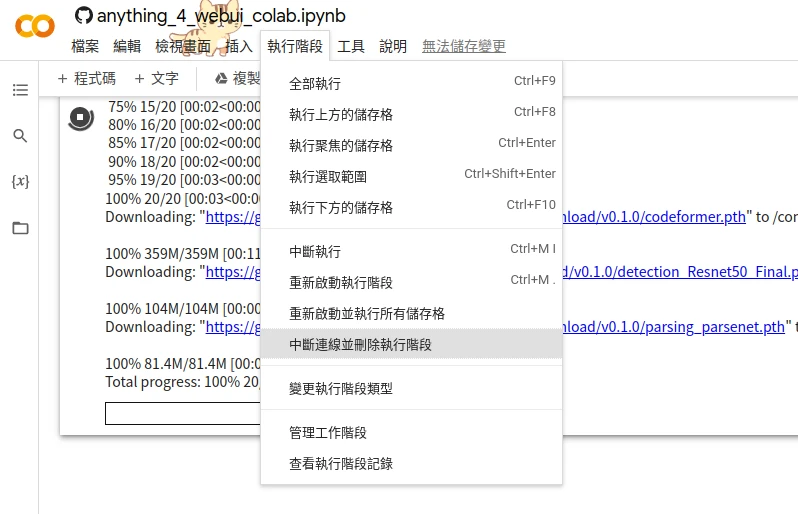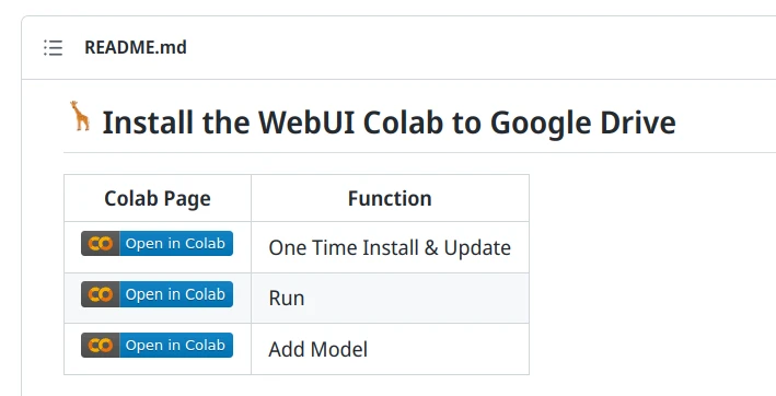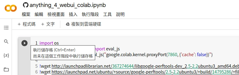 值得注意的是,筆記本作者camenduru有說不必將筆記本複製至自己的雲端硬碟,應使用Github提供的連結版本以確保能自動收到更新。