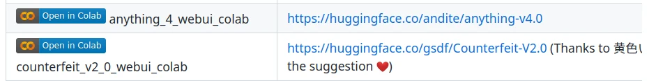 - 到Github,挑選要使用的筆記本,例如畫動漫圖的"Anything V4",點選左邊的