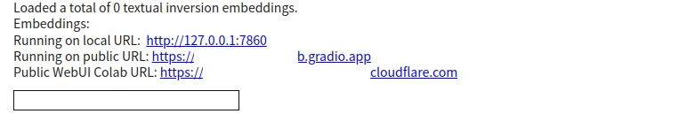 頁面往下滑會看到系統輸出。它會顯示一組網址,點選Gradio或者Cloudflare的連結進入WebUI (連結72小時後失效,順帶一提Google Colab免費版最長運作時間為12小時)