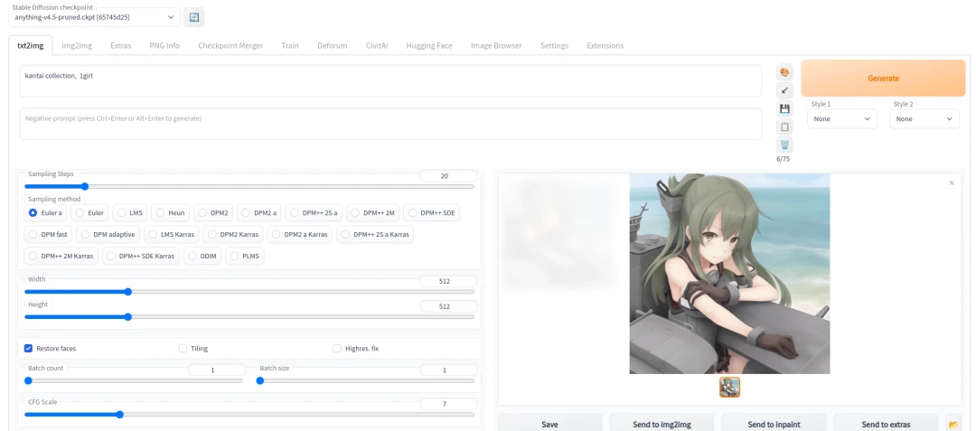 進入WebUI後,用法跟本機部署的Stable Diffsusion雷同,也可以裝擴充功能。於是你就可以下提示詞繪圖了。欲切換成亮色界面請將網址dark改成light。