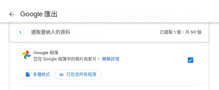 到Google Takeout申請資料匯出作業,僅勾選Google相簿,等Google寄下載連結給你。