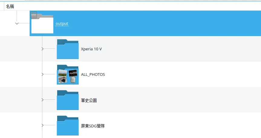 合併結果如下。原本相簿的Json檔案都不見了,所有照片位於ALL_PHOTOS資料夾下,以及各個相簿的資料夾。