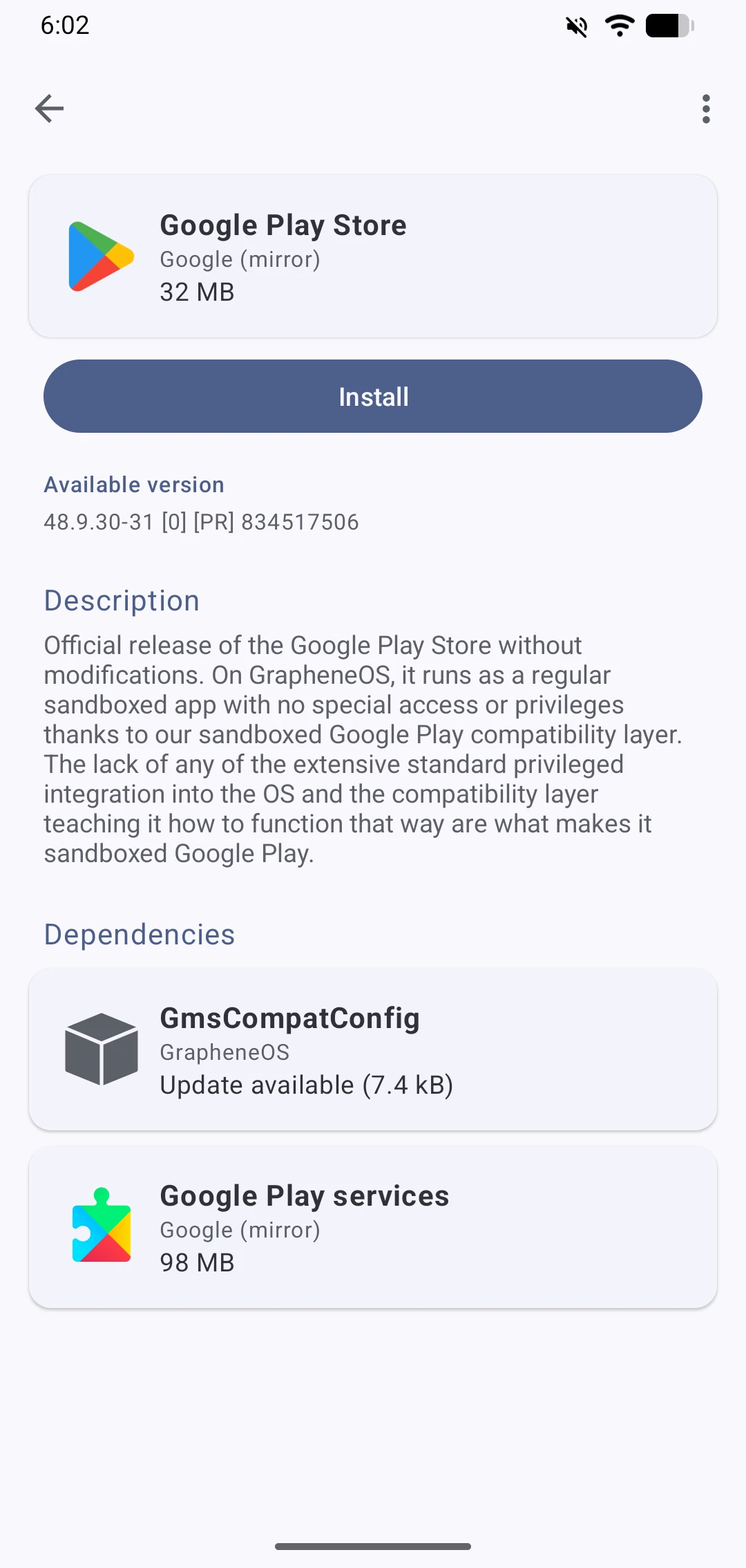 按照GrapheneOS的設計,在你手動點選安裝之前,GMS是不會存在於Android系統裡面的。