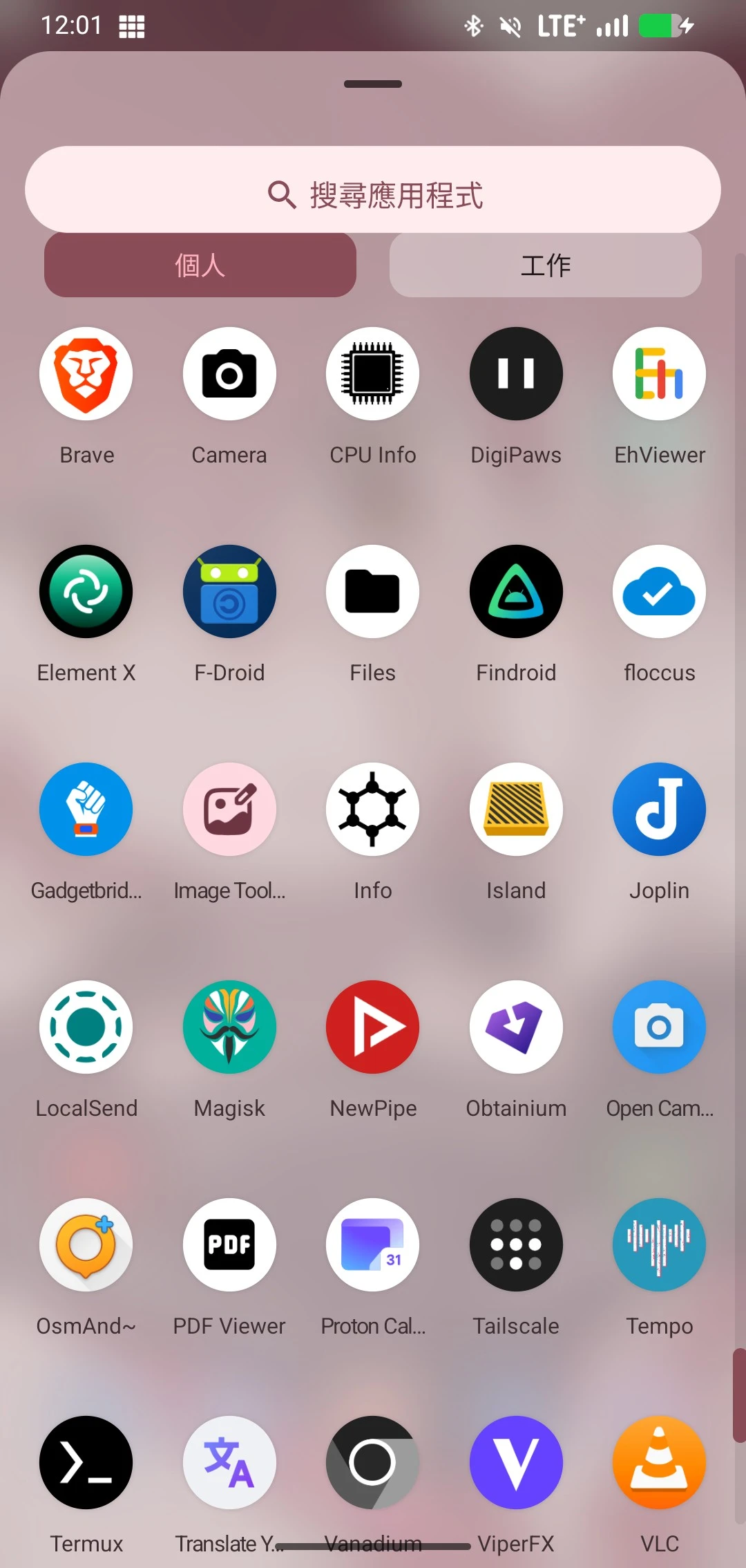 例如,我可以只在工作設定檔安裝GApps,主設定檔不裝GApps,只使用F-Droid下載的自由軟體。