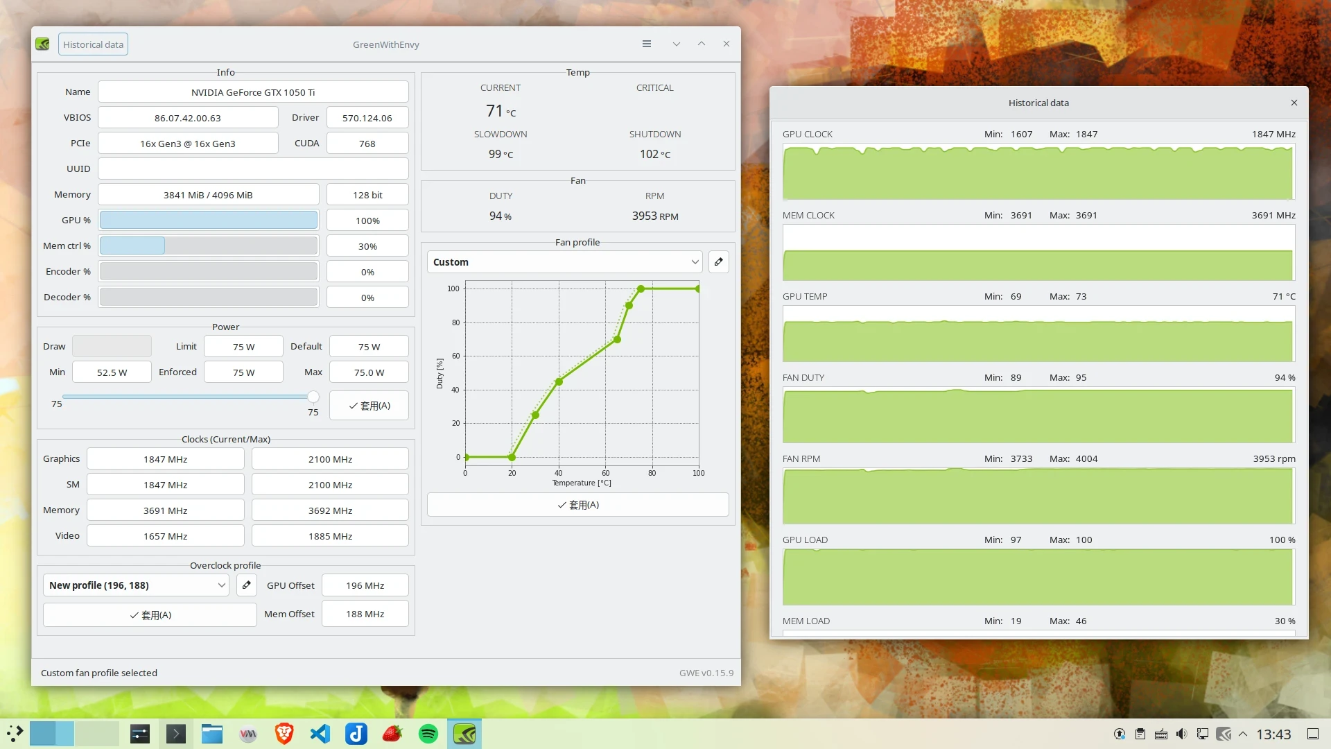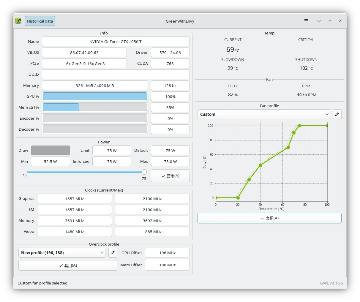 GreenWithEnvy (GWE) 為Linux專用的Nvidia顯示卡超頻與降頻工具,功能類似Windows系統的MSI Afterburner。