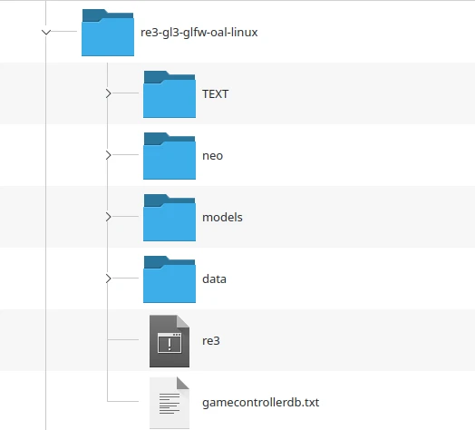 re3-gl3-glfw-oal-linux.zip這個壓縮檔,解壓縮會得到含有re3執行檔的目錄