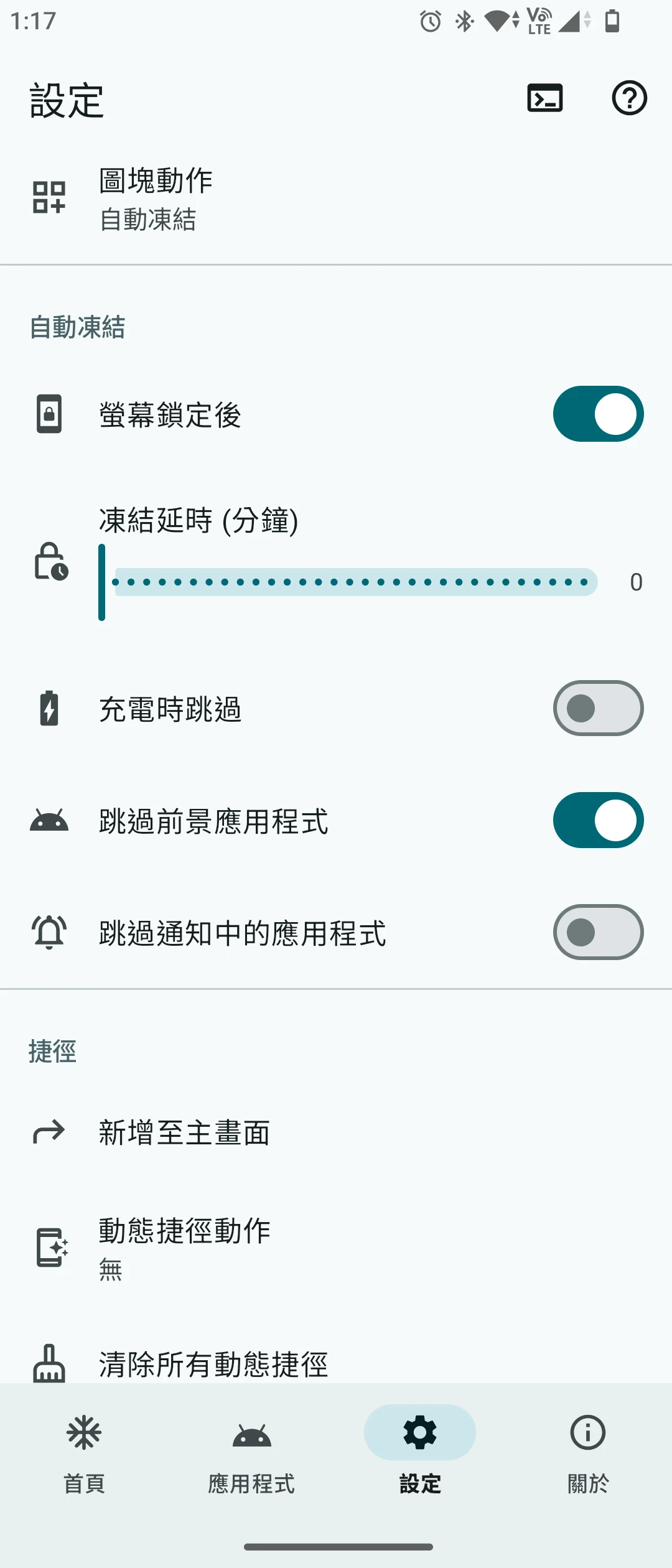 雹除了手動讓APP禁止背景執行之外,也可以設定在螢幕鎖定之後自動凍結指定的APP。