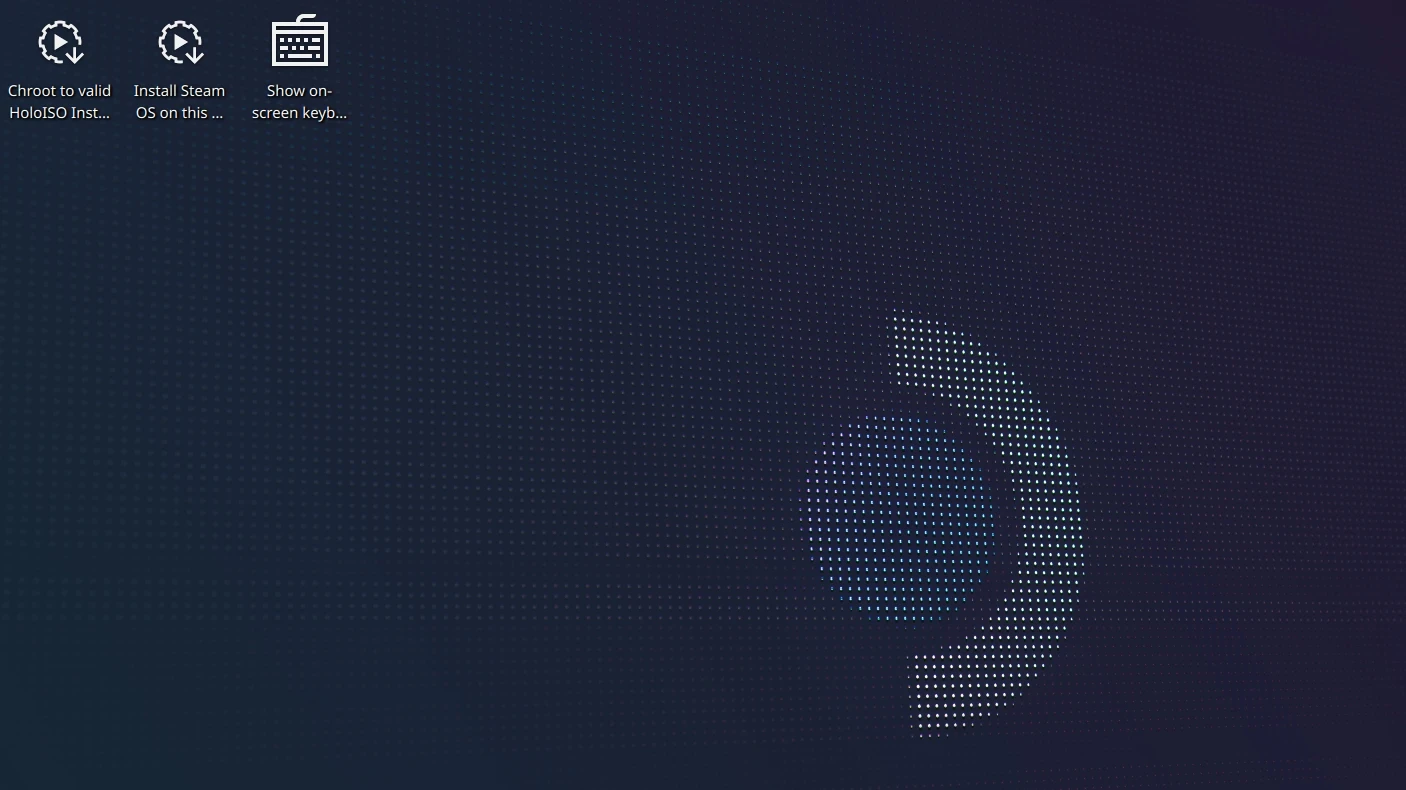 等待HoloISO桌面跑出來,點選左上角按鈕安裝Steam OS