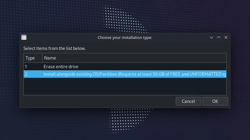 如果電腦有Windows,HoloISO應會自動偵測到並安裝成雙重開機模式(要先在Windows磁碟管理員壓縮磁碟,切出至少64GB的未指派空間給HoloISO)。不過為保險起見,我是用單獨整個硬碟都給HoloISO安裝啦。