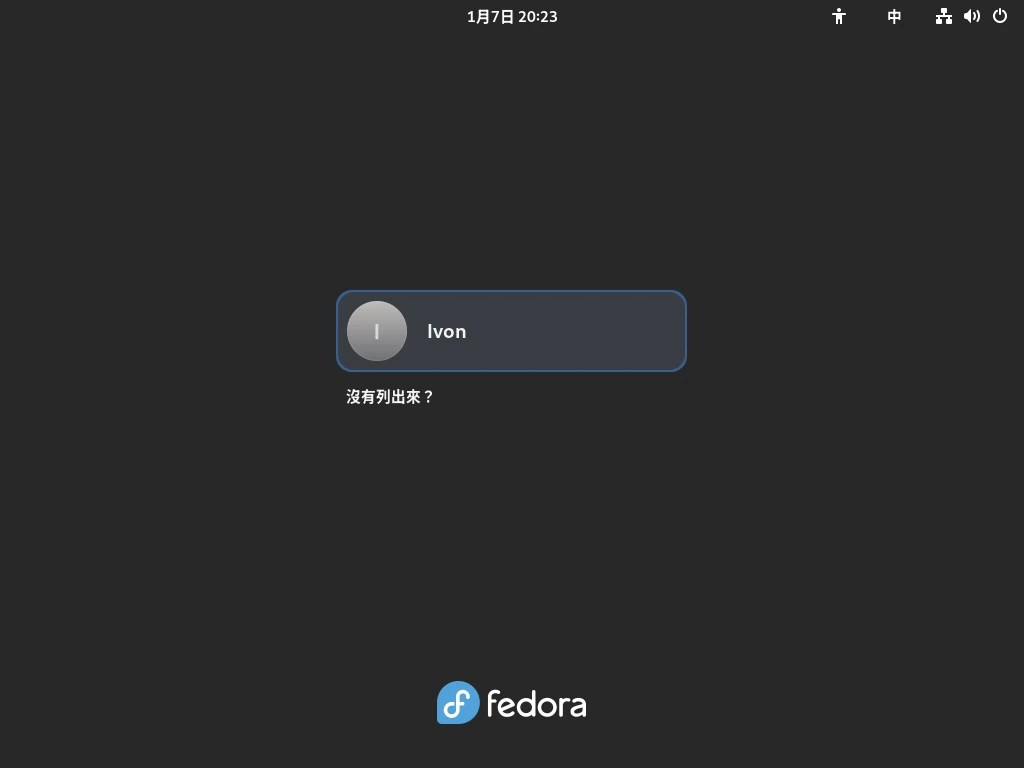 Linux開機之後,會看到登入畫面,此為GNOME的顯示管理器GDM,讓你登入桌面用的。
