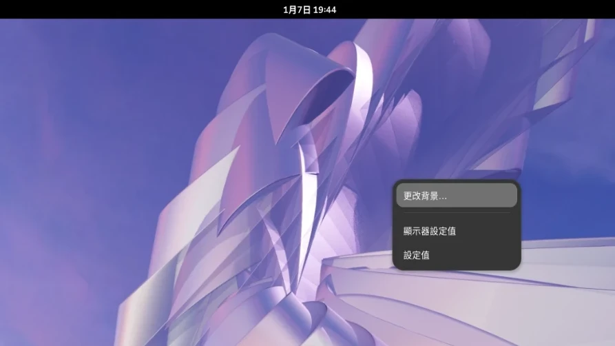 接著,你望向GNOME的背景圖片,想新增應用程式捷徑,卻發現不能放任何東西到「桌面」上?沒錯,GNOME桌面預設就是不能放任何東西的,它只允許你改桌布而已。