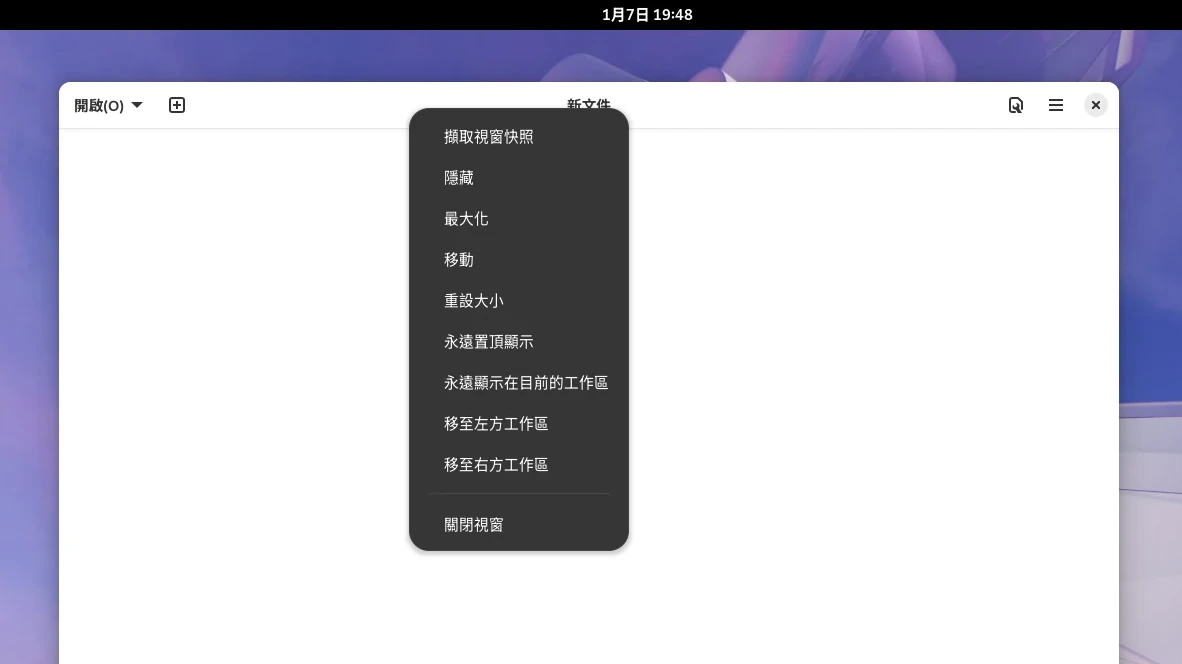對部份程式的視窗標題欄點右鍵,也能夠移動到其他工作區。