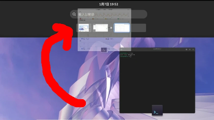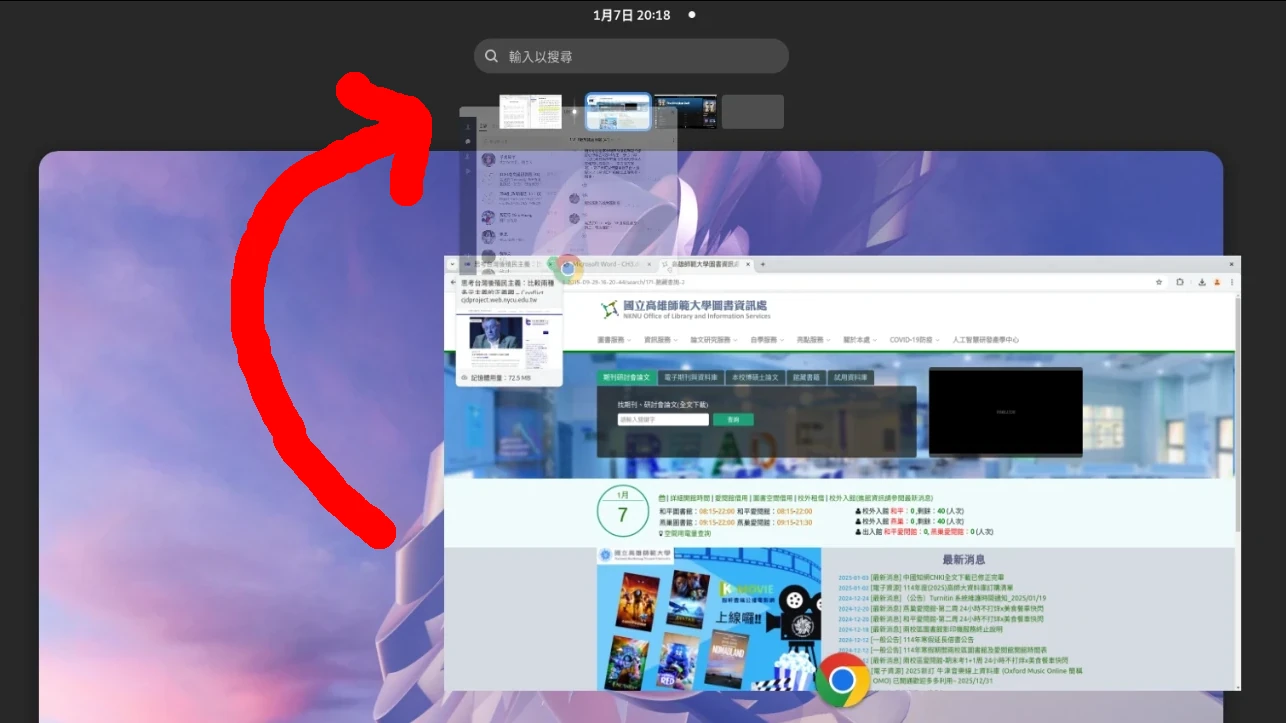 GNOME工作區就是用來放置程式視窗的區域,有點類似Windows 11虛擬桌面。