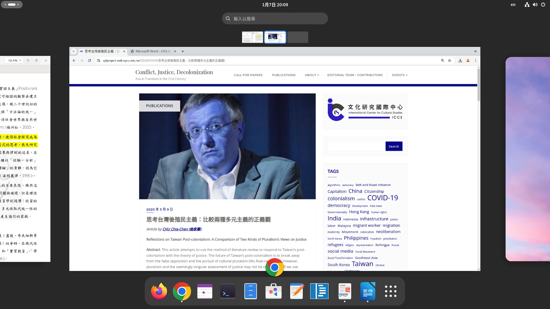 要開啟新的程式視窗,移動到第二個工作區,然後點選圖示開啟程式。由於Chrome瀏覽器應該是全螢幕方便查看資料,所以放到最大。