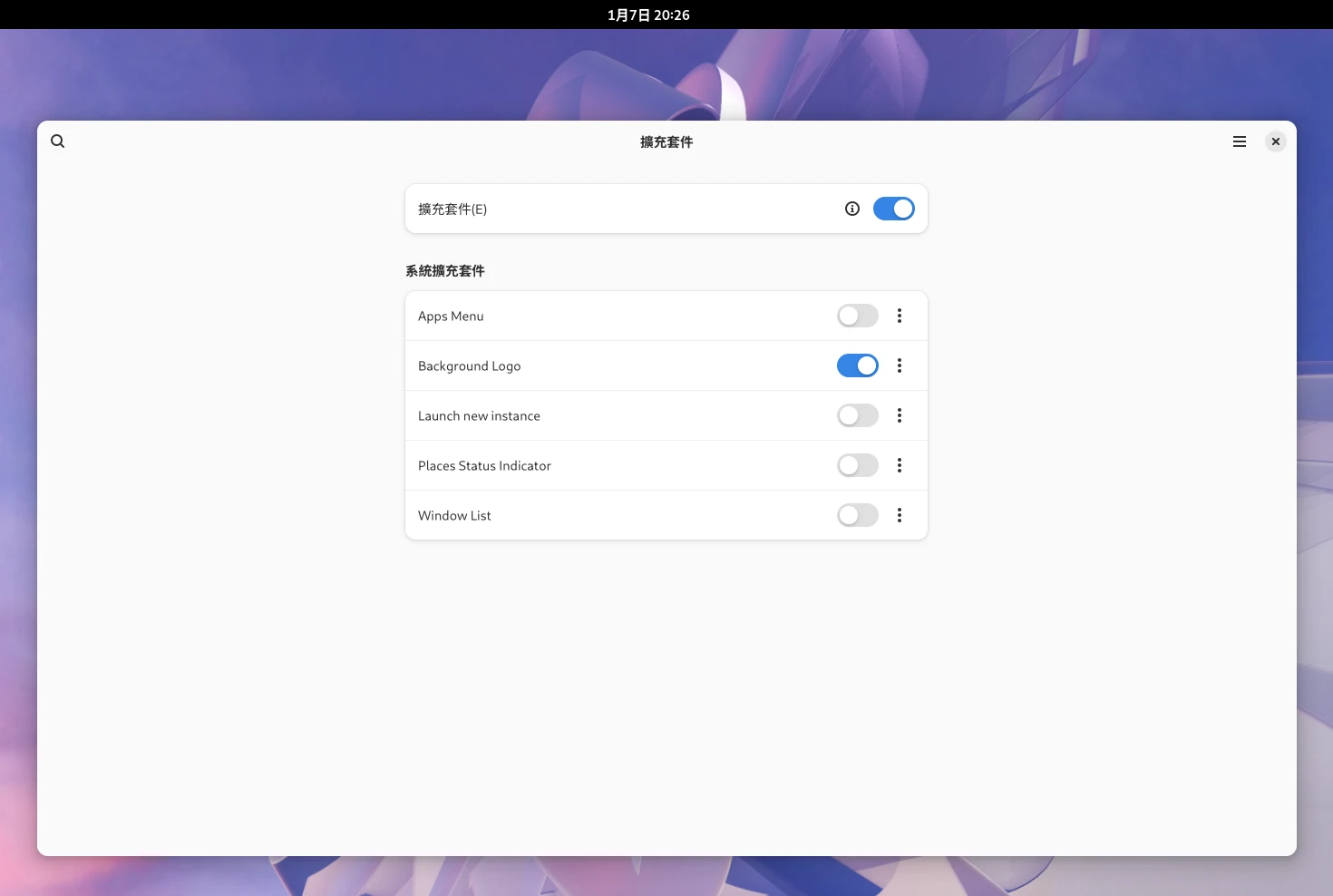 這裡我要再次強調:不要裝太多修改GNOME行為的擴充套件,真的有必要再裝就好。裝太多擴充套件可能導致系統不穩定。