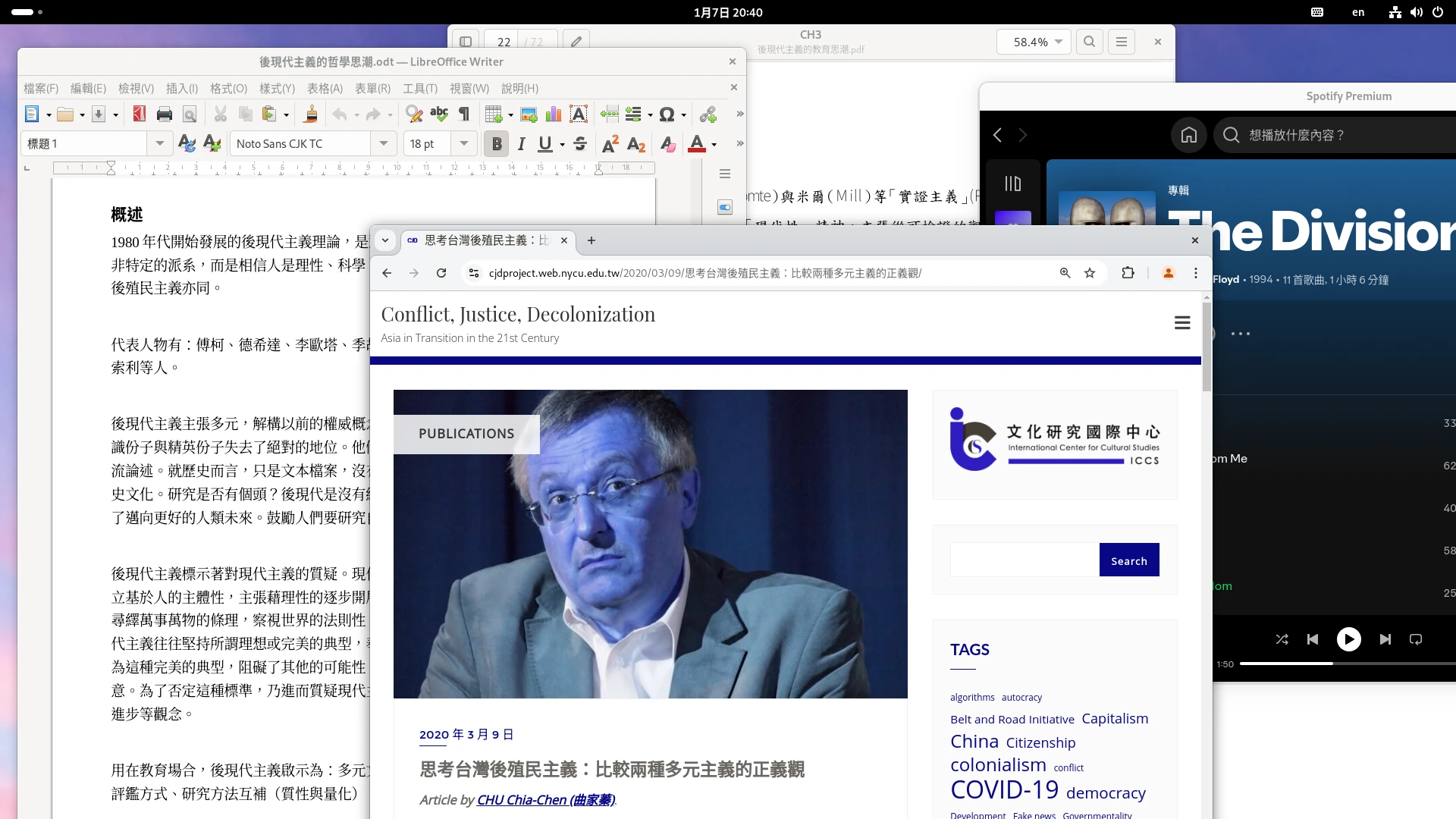 來個使用情境,假設你用LibreOffice打報告,接著需要開PDF檢視器看檔案。然後你又開Chrome瀏覽器找資料,再開一個Spotify聽歌。那麼視窗要怎麼排列呢?