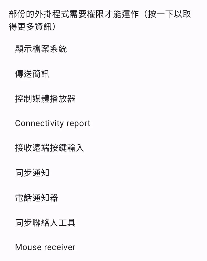 手機初次連線的時候,需要點選以下選項,將必要的權限都開啟 (Mouse Receiver可不開)