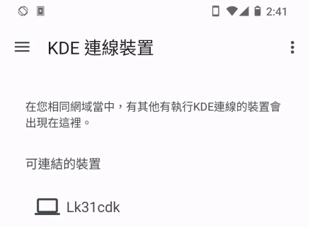 二邊都開啟KDE Connect APP,連線到同一個無線網路(開熱點也可以)。