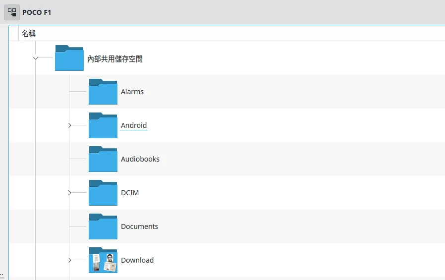 此外,KDE Dolphin應會顯示Android手機的檔案系統(以SFTP掛載),能夠直接在電腦檢視手機檔案。