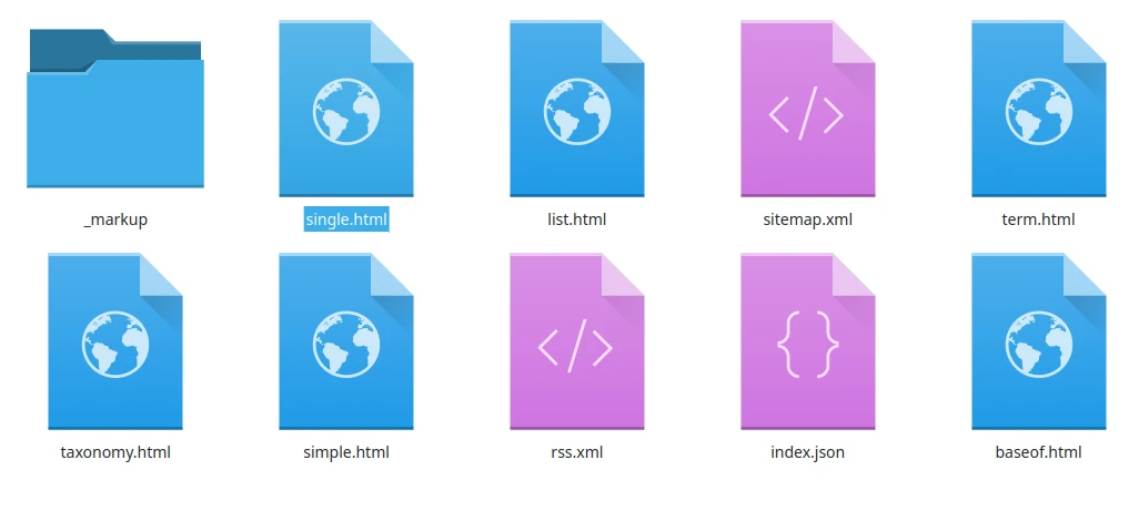 themes/主題/)下,找到/layouts/_default/single.html的檔案,這是單個網頁所包含的元素。