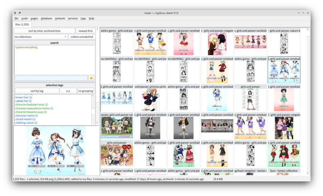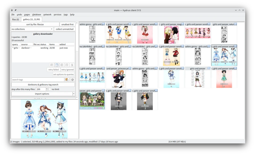 girls_und_panzer official_art,按下Enter,就會開始下載Danbooru網站的最新圖片,並進到Hydrus的收件匣。