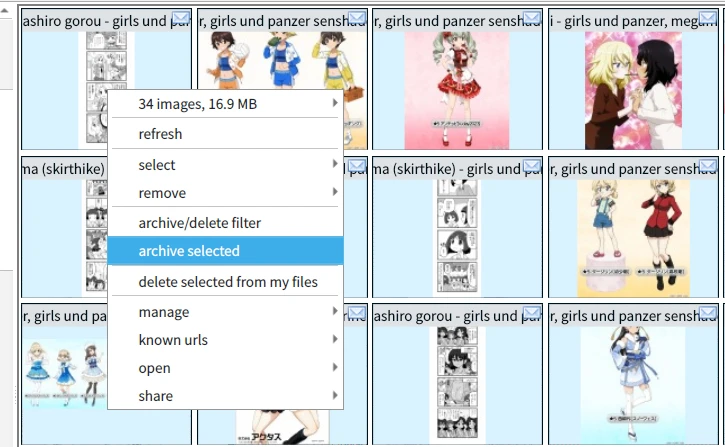 對順眼的圖片按下右鍵(Shift或Ctrl多選),按archive selected將圖片封存進Hydrus資料庫。