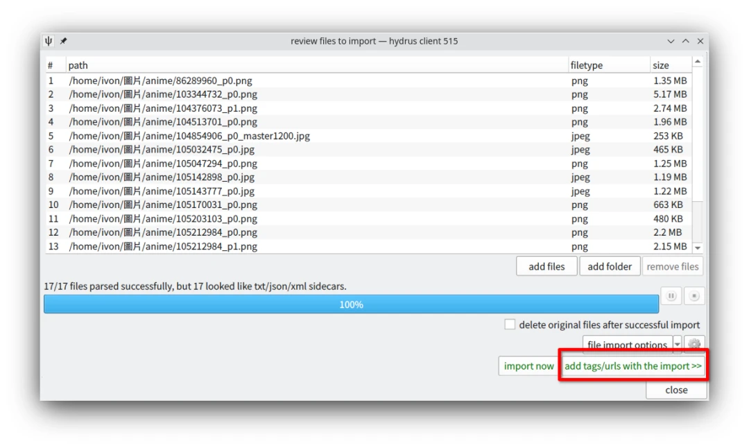 Hydrus匯入的圖片會原封不動複製到資料庫,因此匯入後可將原圖檔案刪除。