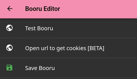 點選最上方Test Booru,確認能連線(綠燈)後才按Save Booru
