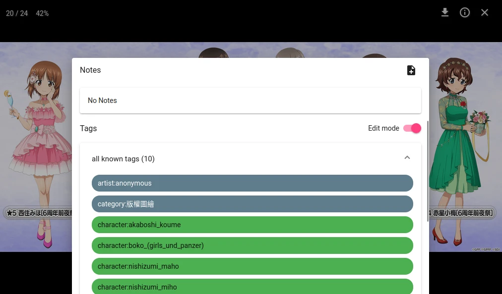 在這裡就可以搜尋Hydrus圖庫的圖片了,LoliSnatcher還支援儲存搜尋紀錄、多重分頁、編輯圖片標籤。