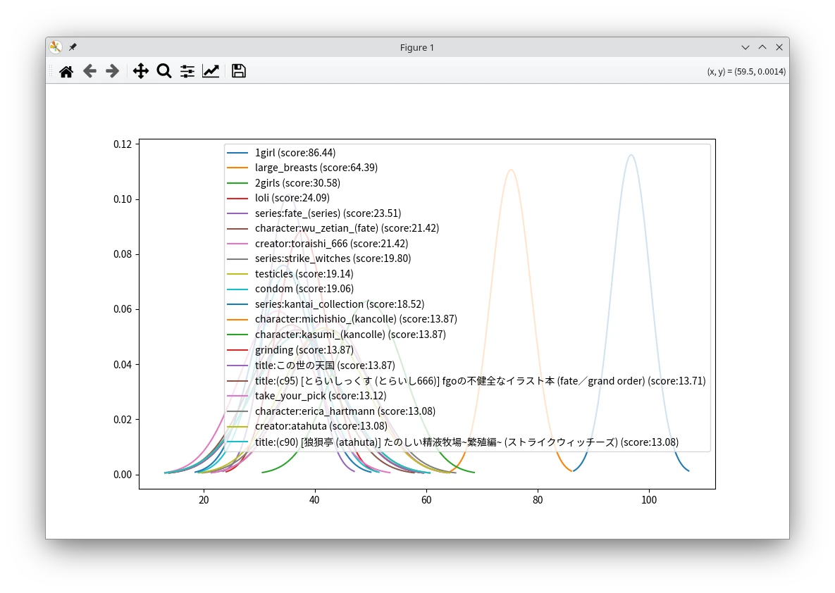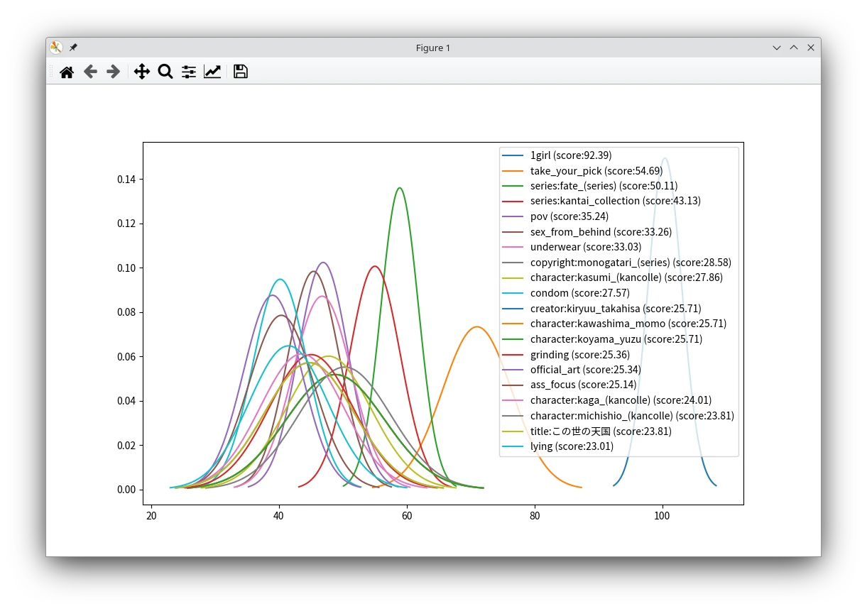 另外一種玩法是,不要用自己的圖庫,利用Hydrus Network的大量下載功能,從圖站下載一批圖片。他們會自動把標籤一併抓下來。然後你再用TagRank去跑。譬如我下載1000張標籤character:astolfo_(fate)的圖片,藉此統計比較喜歡那些姿勢的圖片。