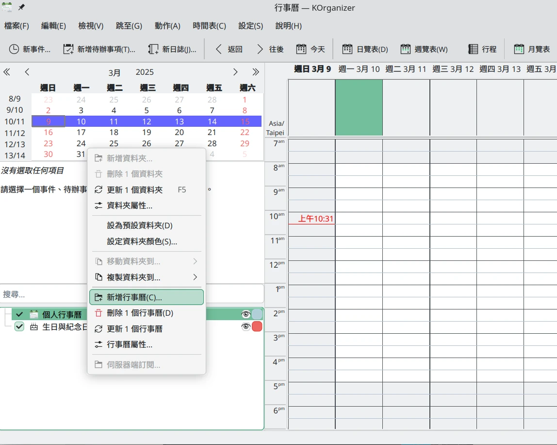 安裝KOrganizer套件。