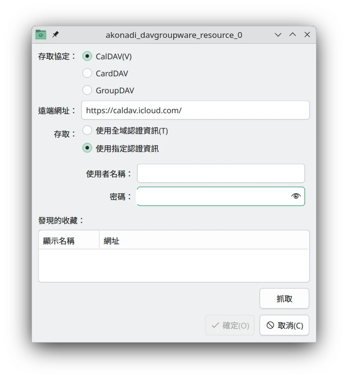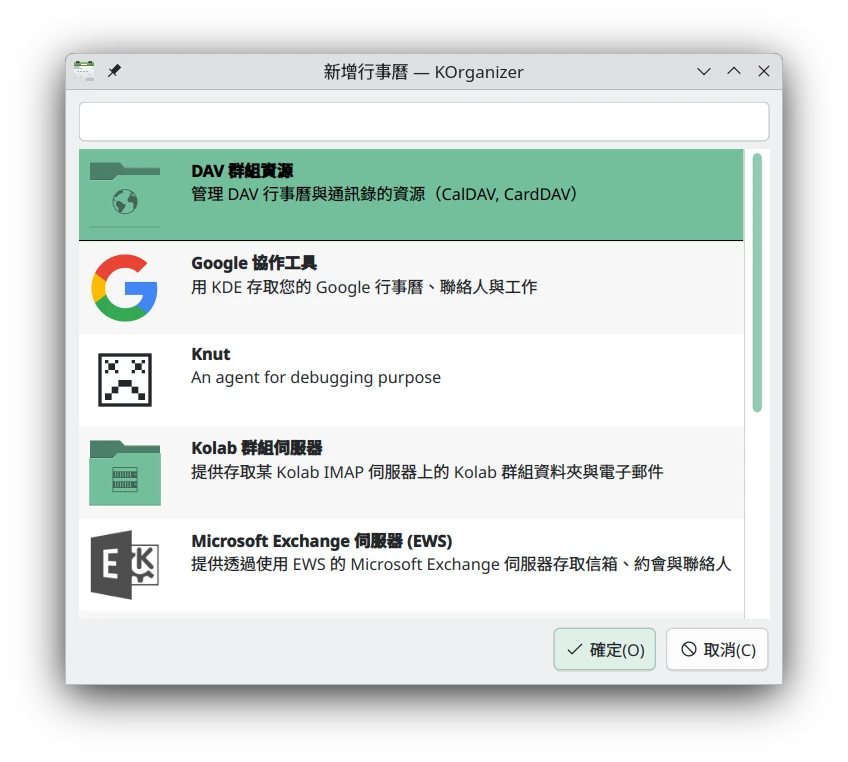 KDE Plasma 6的Akonadi支援CalDAV協定,理論上應該是能連線的才對…但是我連線會出現錯誤,可能是bug。