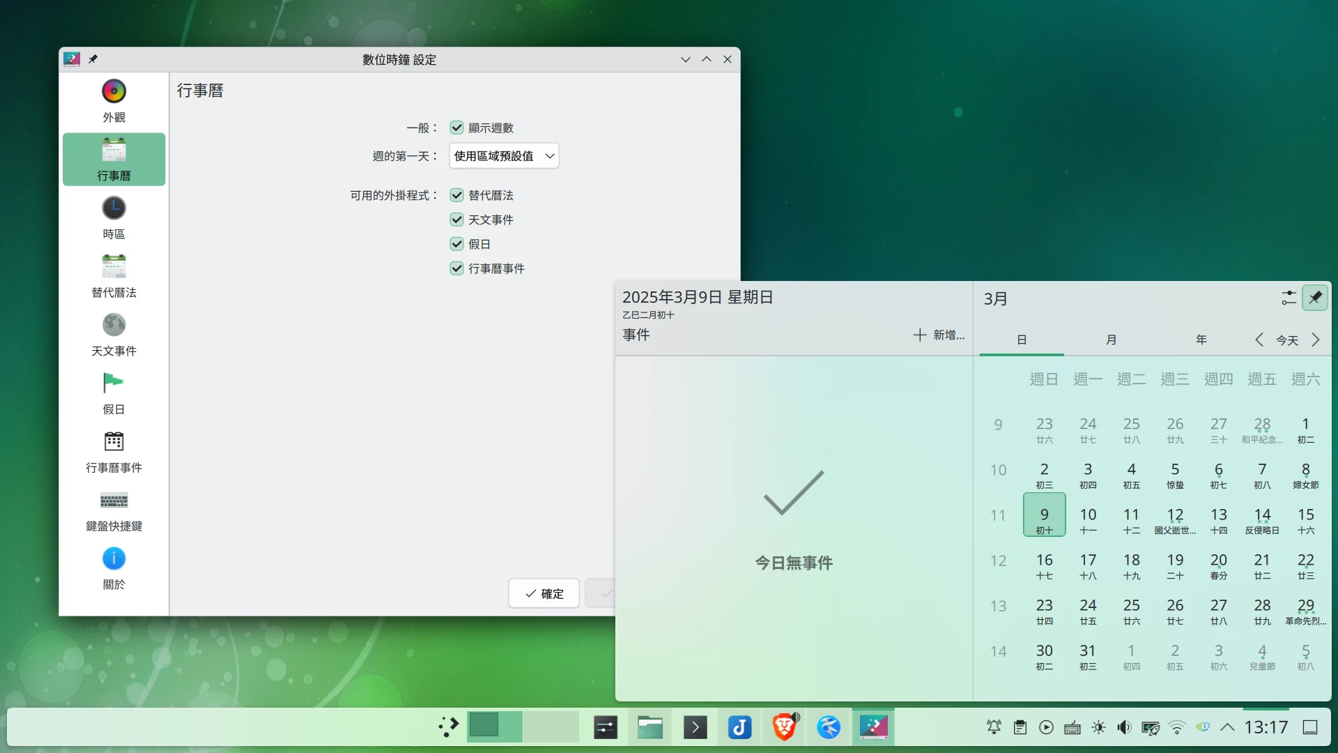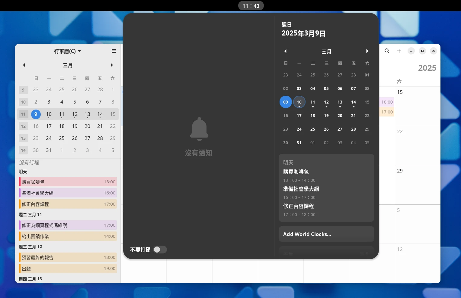 開啟GNOME行事曆 (ganome-calendar)